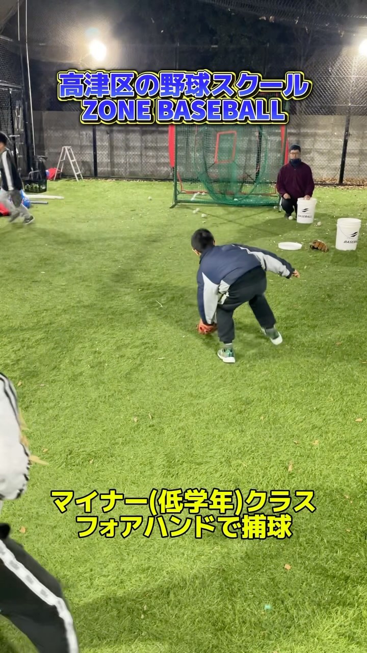 高津区の野球スクール、ZONE BASEBALLです⚾️⚾️ 低学年の捕球練習の様子です。 まだ力がない小学生のうちは、股を割って両手で捕る姿勢よりも、流れの中で捕ることを推奨しています。 全ては送球のためです。 前にチャージして、股を割ると勢いが一度消えてしまいます。脚力と肩力があればそこからワンステップで送球にいけますが、低学年にはキツいかな、と。 そこで、当スクールではフォアハンドの習得を第一に持ってきています。当然スタンダードな両手捕球も練習しますが、まず先に覚えるのがワンハンドキャッチだ、と位置付けております。 ボールを前で、早く触る。 その段階を経てから、待ったり引いたりという引き出しを増やしていけばいいという考え方です。 捕球姿勢を覚えてもらう段階なので、投げ方はうるさく言いません。別個で練習してから繋げます。 今後も練習内容やポイントの解説などを投稿してまいりますので、フォローをお願いします⚾️ #川崎市 #高津区 #野球塾 #学童野球 #少年野球